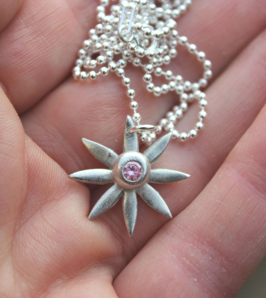 It’s not all about the hedgehogs! One of my favourite designs (aside from hedgehogs of course!) are these silver birthstone pebbles. Each one is hand-formed and is completely unique. This one is set with a rare pink sapphire but I can also use other birthstones. They make lovely gifts because no two will ever be quite the same. I’ve also made custom earrings to match this design.