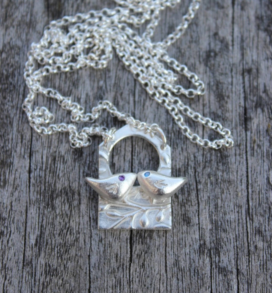Each owl and bird is individually hand sculpted in silver clay with inset gemstone eyes. They fire to solid silver. I love the fact that each one is completely unique and no two will ever be quite the same – making them a very personal gift. Each has its own unique personality and I can use a wide range of different gems for the eyes.