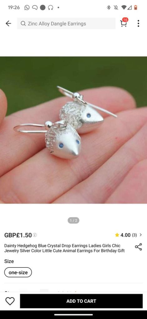 I am trying to pursue this vital issue as I am now aware of so many other small makers affected by copyright theft. Here is the original advert on Shein – but you actually receive the earrings top left in my image above.