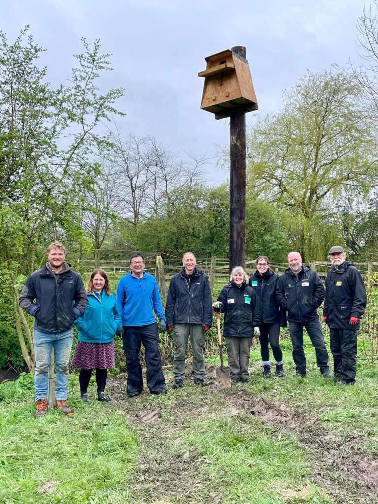 The log walls and compost heaps provide hibernation spots for many creatures and we’ve also installed a Barn Owl box, bat boxes and bird boxes around the site. A Kestrel is currently using the Barn Owl Box as a perch.