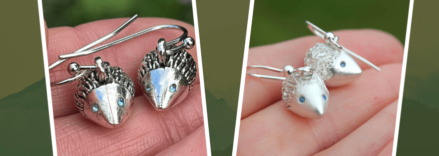 Hedgehog jewellery uniquely handmade in recycled silver and copper. My wildlife jewellery raises funds for my wildlife rescue work.